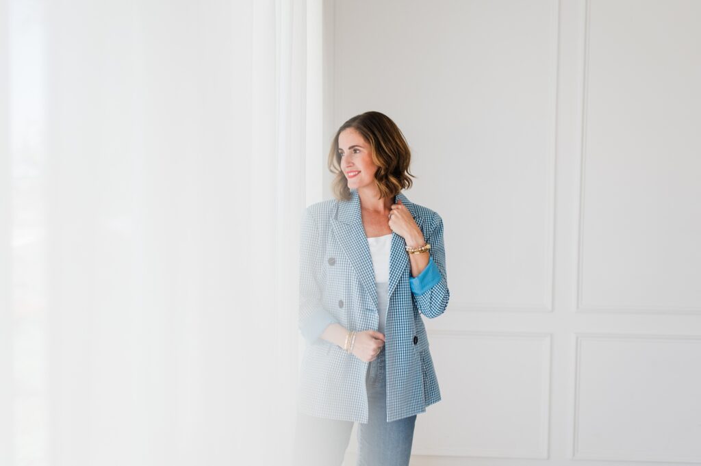 This session was all about showing her reality. We incorporated her actual routine, coffee in hand, a quick snuggle with the dogs, and the beautiful, controlled chaos of her life. This part of the shoot hammered home her commitment to work-life balance: she’s present with her family, but she’s also a powerful CEO. These photos are warm, inviting, and captures the authenticity of her brand.